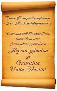 Turun Konepäällystöyhdistys toivottaa Hyvää Joulua